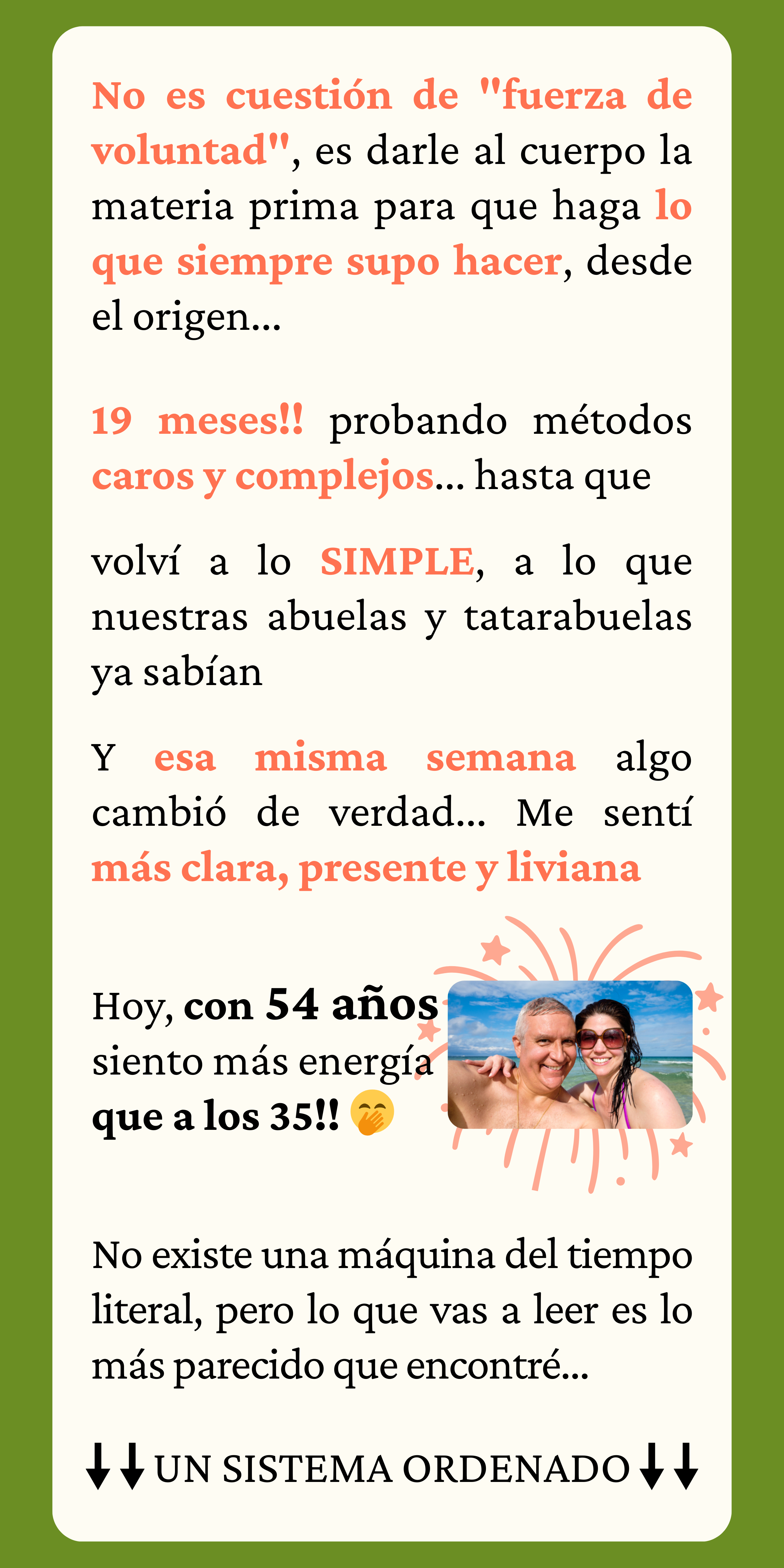 La guía PASO A PASO que ayudó a más de 3800 personas a resetear su metabolismo, y recuperar su cuerpo, su energía y así SU VIDA. Si tenés más de 40 años pero te sentís de 85, LLEGASTE AL LUGAR CORRECTO ❤️