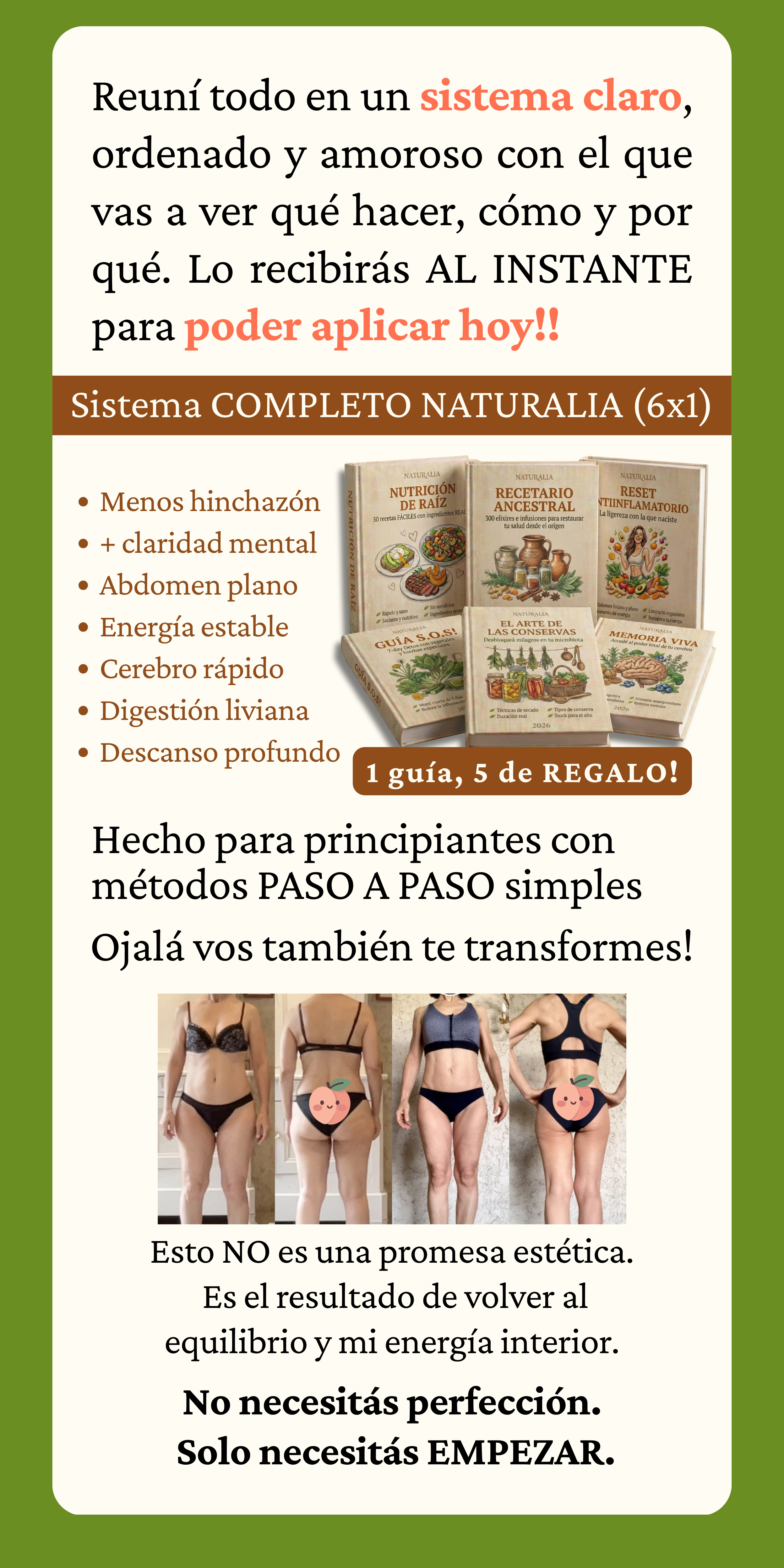 Si sentís cansancio, pesadez digestiva, mente saturada o falta de organización con la comida, este sistema completo te ayudará a volver al equilibrio natural con hábitos reales, recetas accesibles y planes fáciles que podés aplicar desde HOY.